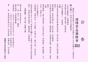 本廟謹定於乙未年農曆七月十五至十七日(西曆2015年8月28-30日)一連3天為本年度盂蘭勝會,祭典內容請點擊下圖公告。凡有意參加法會的善信,請提前諮詢預約。
